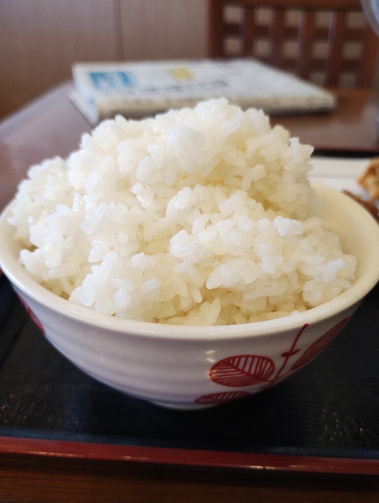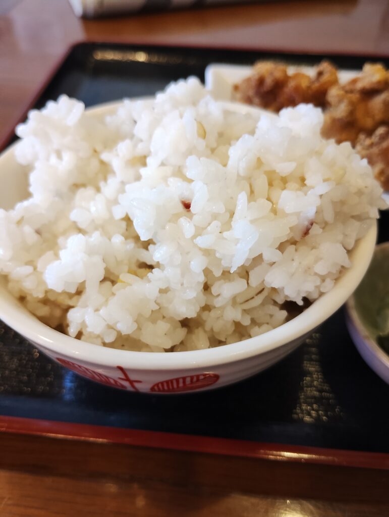 - 3杯目:白米(大盛り)。ここでまさかの品種変更! やっぱり唐揚げには銀シャリだよね!と本能が叫びました。