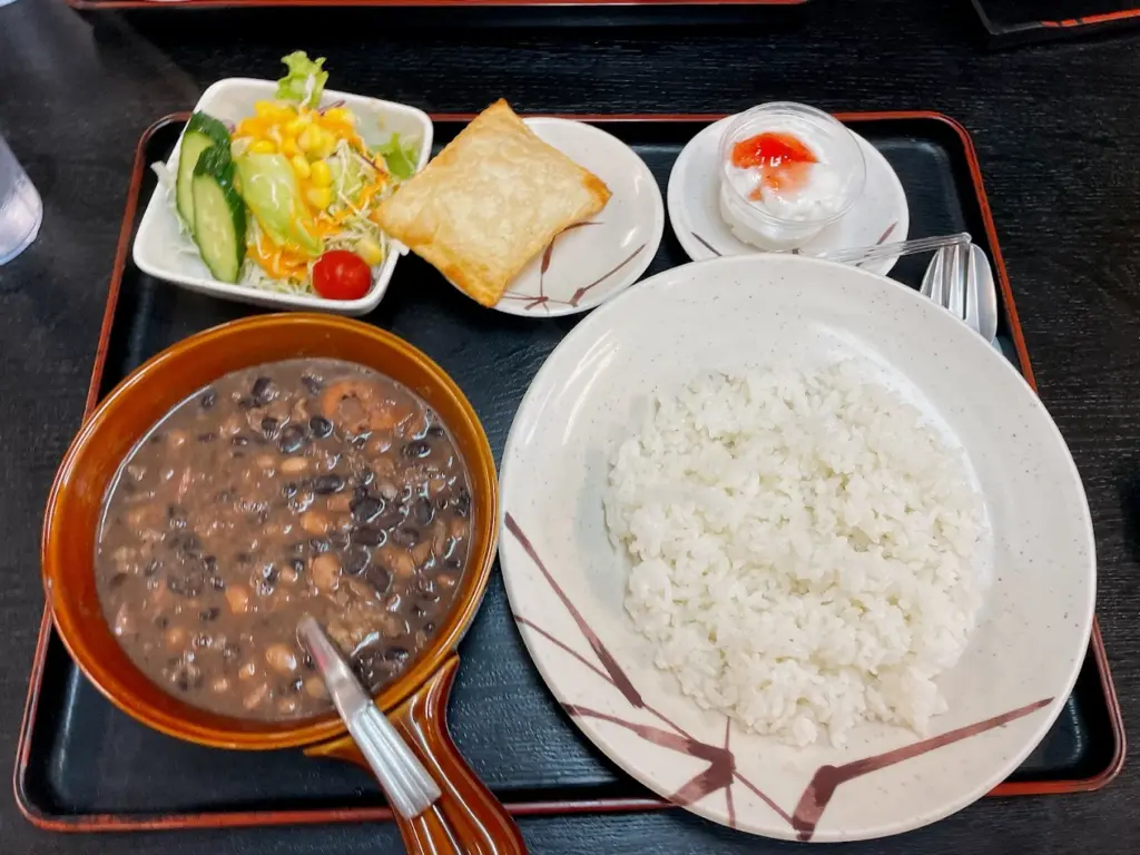そして、気になる「フェイジョアーダ」。 ハリー・ポッターの呪文みたいな名前ですが、これは黒豆とお肉を圧力鍋で煮込んだブラジルの家庭料理。見た目は真っ黒でインパクト大ですが、食べてみると…あらやだ、めちゃくちゃ優しい味! じっくり煮込まれているので、お肉はホロホロ、豆はホクホク。辛さは全くなく、まるでブラジルのお母さんに抱きしめられているような安心感があります。