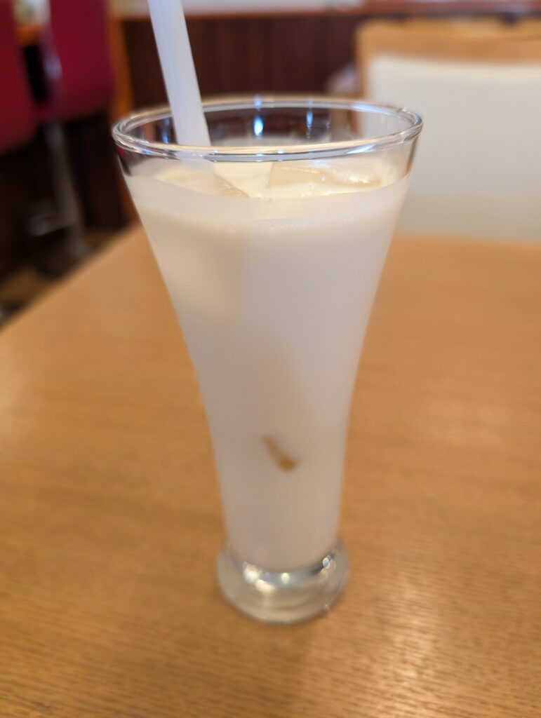 これがね、めちゃくちゃ濃厚! ストローが立ちそうなくらい濃い。辛口カレーで火照った口内を、優しく、かつ徹底的にコーティングしてくれます。まさに口の中の消火活動。