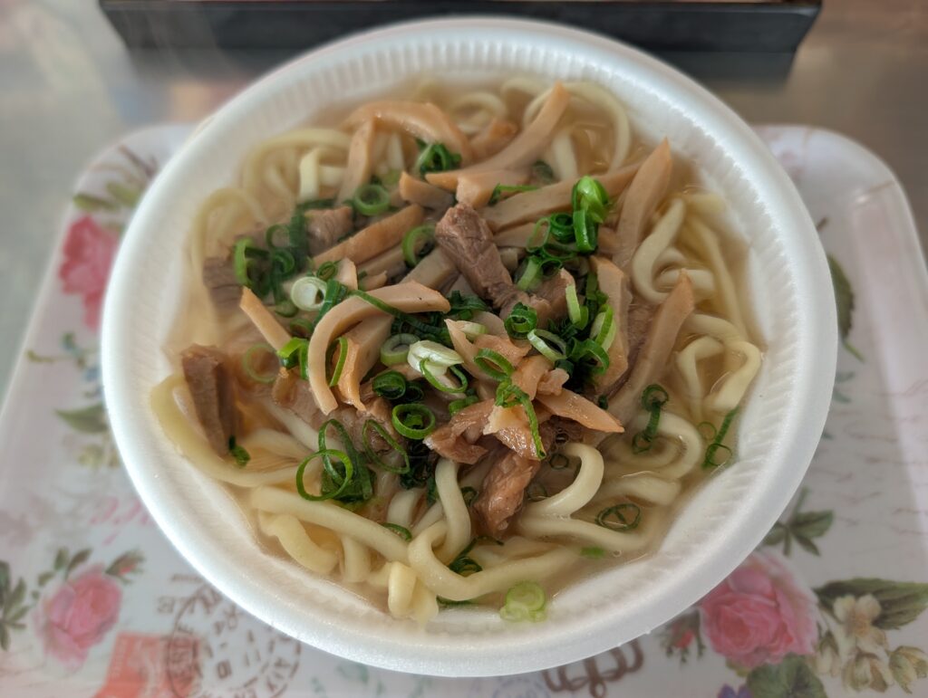 ​ここでの主役は、なんと言っても「沖縄そば(中)」。お値段、驚愕の500円!いいですか、ワンコインですよ?2026年の物価高騰なんてどこ吹く風。500円玉一枚で、アツアツのそばが食べられるなんて、もはや那覇港の奇跡と言っても過言ではありません。