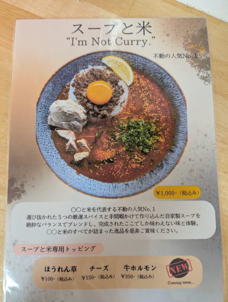 今回いただいたのは、看板メニューの「スープと米」。