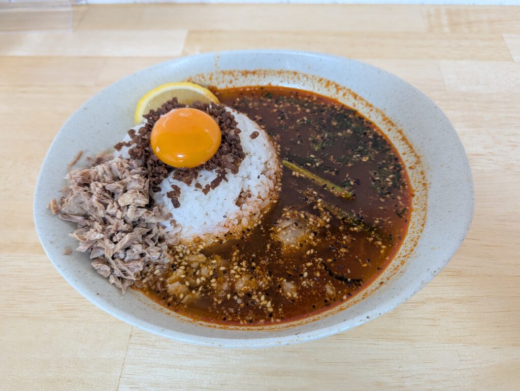 そして、この店がニクいのは「3度楽しめる食べ方」の提案。 最初はそのまま、次はトッピングを混ぜて、最後は…といった具合に、味のグラデーションが止まらない。あまりに米が進みすぎて、もはや「米を食べるためのスープ」なのか「スープを飲むための米」なのか分からなくなります。