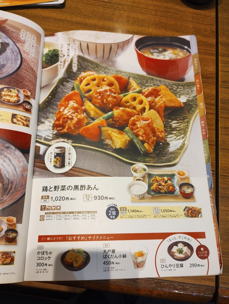 ちなみに大戸屋さんはごらんのとおりメニューが豊富で、どれも間違いない美味しさです!