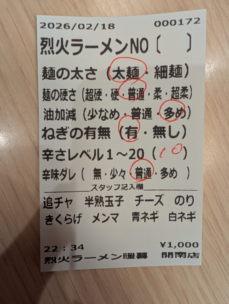 - 店名:烈火ラーメン暖暮 那覇開南店