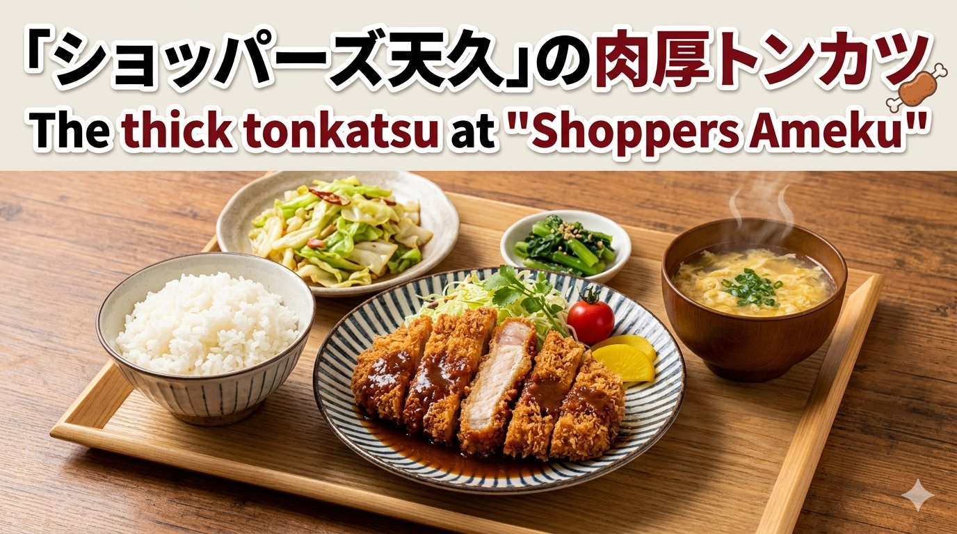 その名も「ショッパーズ天久」。名前だけ聞くとオシャレなセレクトショップかスーパーマーケットかと思いますよね?外観を見てさらに驚愕。……これ、事務所?とにかく「食堂」というオーラを全力で消し去っています。初めて行く人は、間違いなく店の前を3往復はするでしょう。でも、安心してください。その扉を開ける勇気こそが、至福のランチへの通行手形なのです。