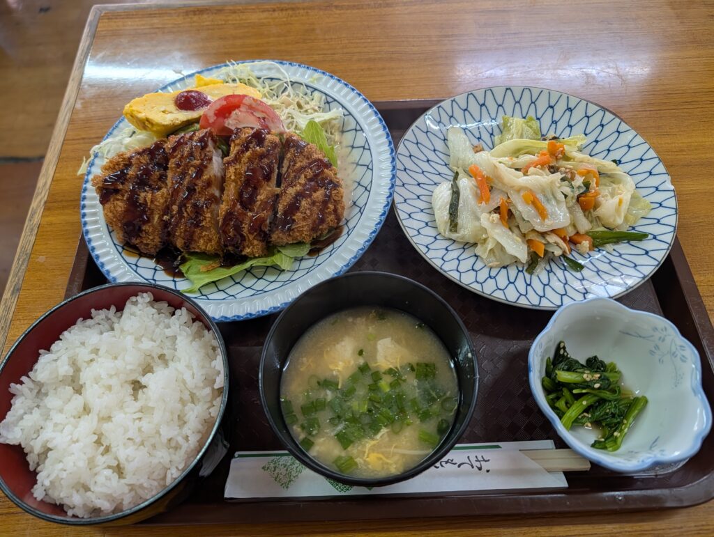 今回私が指名したのは「ローストンカツ(大)」。運ばれてきた瞬間、私の視界は茶色い絶景に支配されました。見てください、この肉の厚み!「これ、トンカツじゃなくて、肉のブロックですよね?」と確認したくなるほどの圧倒的存在感。箸で持ち上げると、ずっしりとした重みが腕に伝わります。