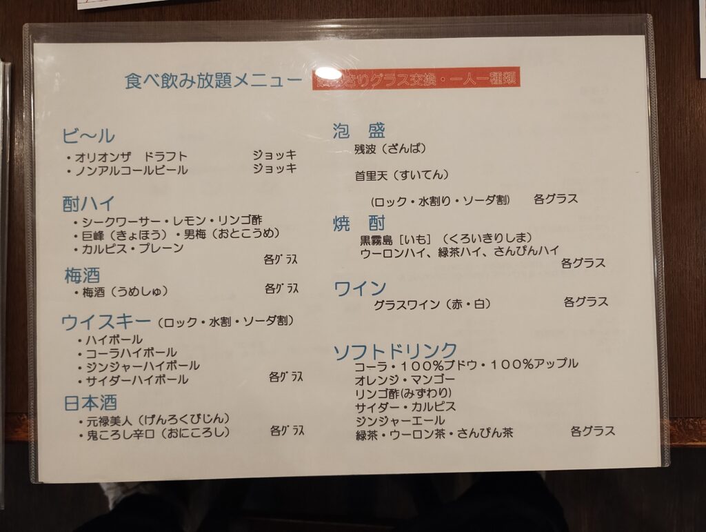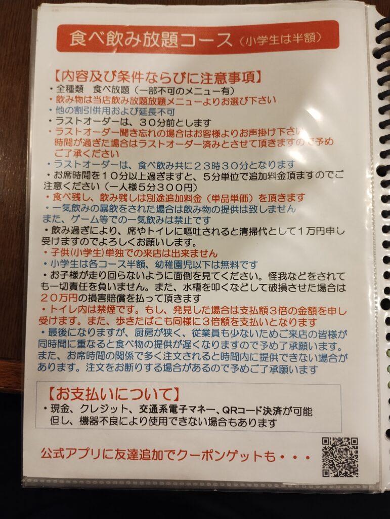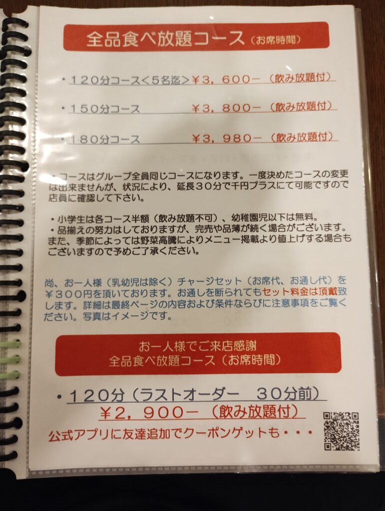 しかも、ここの価格設定、完全にバグってます。 聞いて驚け。「お一人様限定 食べ飲み放題 120分 2,900円」。 ……はい? 2,900円? 飲み放題もついて? ベトナムの屋台でももう少し取るよ!?