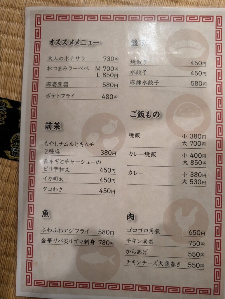 ここ、ラーメンが絶品なのは当たり前なんですが、真骨頂は「ラーメン飲み」にあります。 おつまみメニューが充実していて、なんと飲み放題まで完備!